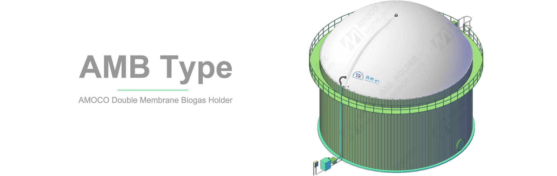 Dantian AMB double membrane biogas holder( digester membrane roof, digester cover) by AMOCO is normally installed on top of digester tank.